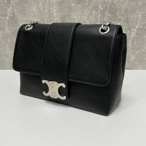 Черная сумка Celine из натуральной кожи. Серебристая фурнитура эффектно подчеркивает дизайн модели. Такой аксессуар должен быть у каждой современной модницы. В нашем интернет-магазине вы можете купить копии сумок с доставкой по Москве и по всей России.