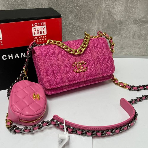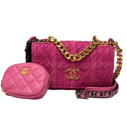 Розовая сумка Chanel из текстиля. Прекрасный аксессуар подчеркнет ваш утонченный вкус. Стильная модель дополнена кошельком-монетницей, которую можно носить как отдельный аксессуар. В нашем интернет-магазине вы можете купить копии сумок с доставкой по Москве и по всей России.
