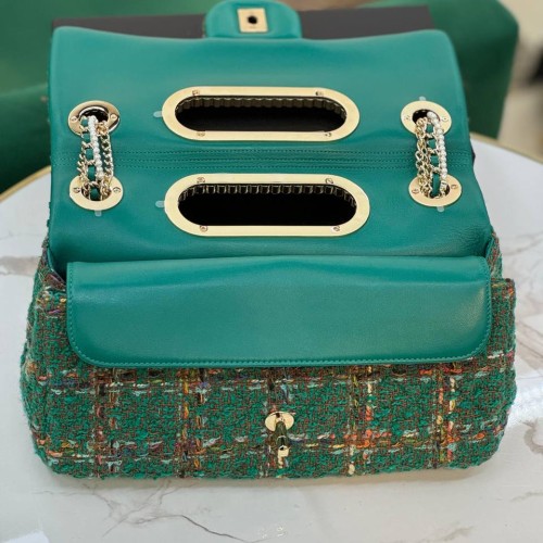 Сумка с закрытием на клапан с поворотным замком. Внутри: одно отделение с клапаном и кнопкой, внутри него два кармана открытого типа, плоский карман под клапаном.