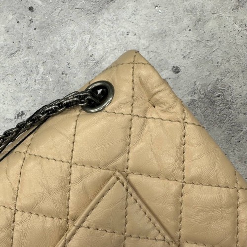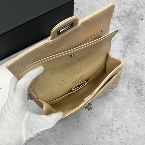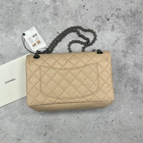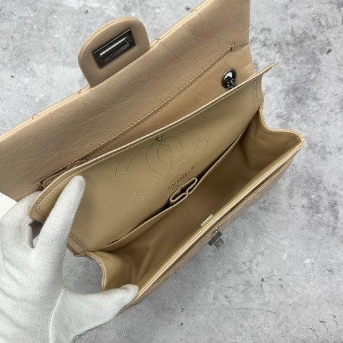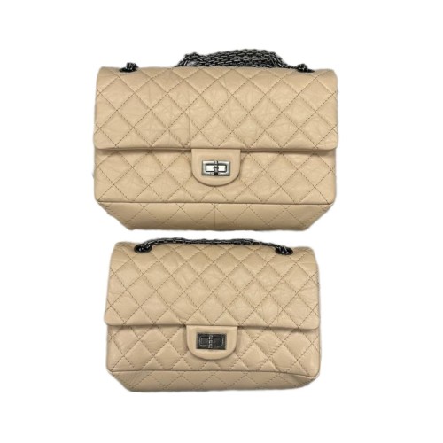 Сумка с закрытием на клапан с поворотным замком. Внутри: карман на молнии и одно отделение с клапаном и кнопкой, внутри него два кармана открытого типа, плоский карман под клапаном. Снаружи: плоский карман открытого типа сзади.
