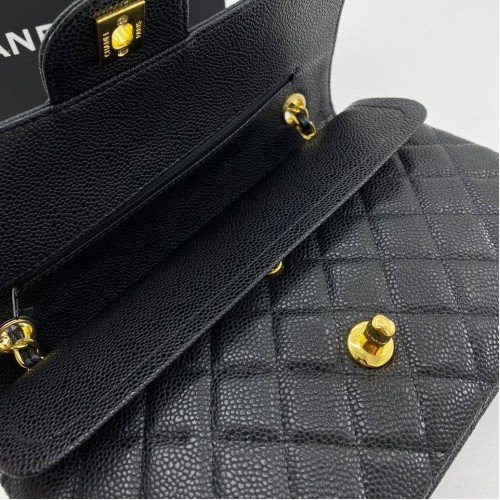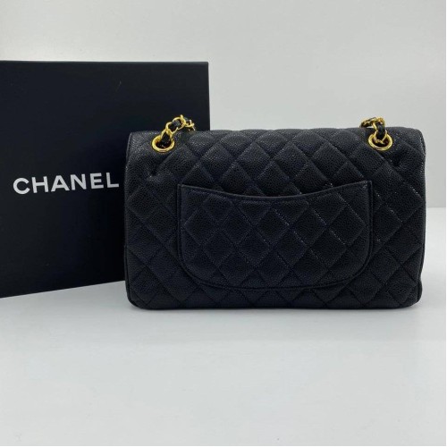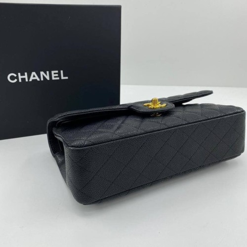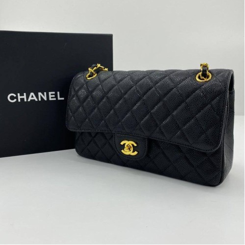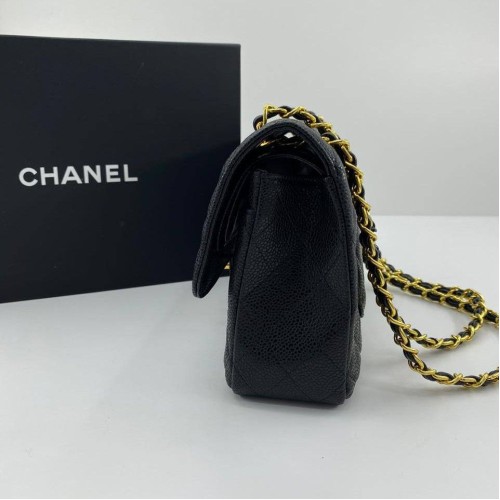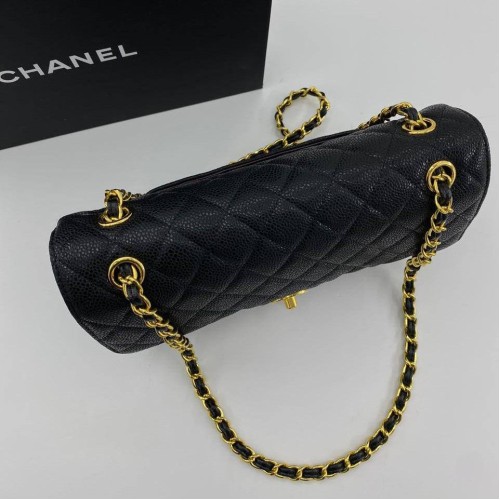 Черная сумка Chanel из натуральной кожи. Роскошная фурнитура золотистого цвета украшает элегантную модель. Удобный аксессуар будет гармонично смотреться в любом образе. В нашем интернет-магазине вы можете купить копии сумок с доставкой по Москве и по всей России.