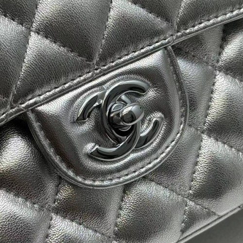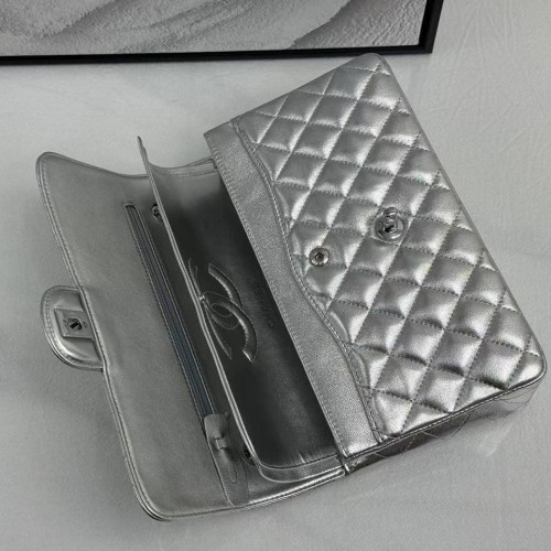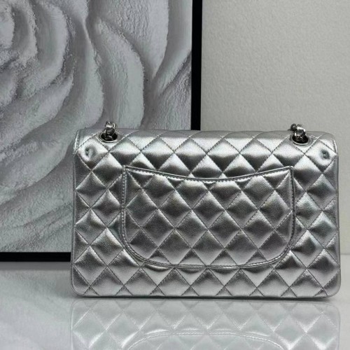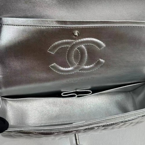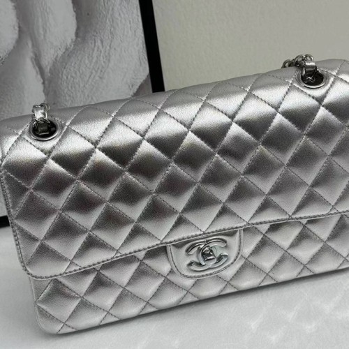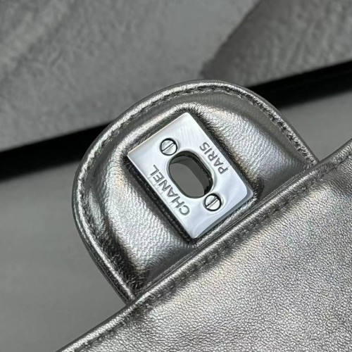 Серебряная сумка Chanel из натуральной кожи. Роскошный аксессуар дополнен серебристой фурнитурой и скользящим ремешком-цепочкой. С такой сумкой вы можете создавать стильные и актуальные образы. В нашем интернет-магазине вы можете купить копии сумок с доставкой по Москве и по всей России.