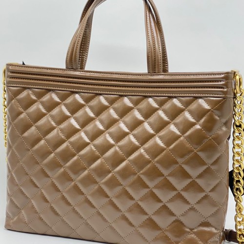 Коричневая сумка Chanel из натуральной кожи. Эта удобная и вместительная сумка изготовлена из стеганой кожи прекрасного качества выделки. Практичный и актуальный аксессуар великолепно впишется в любой стильный гардероб. В нашем интернет-магазине вы можете купить копии сумок с доставкой по Москве и по всей России.