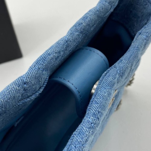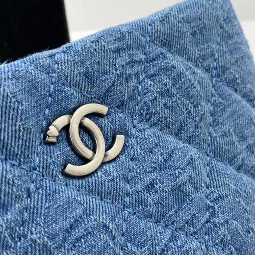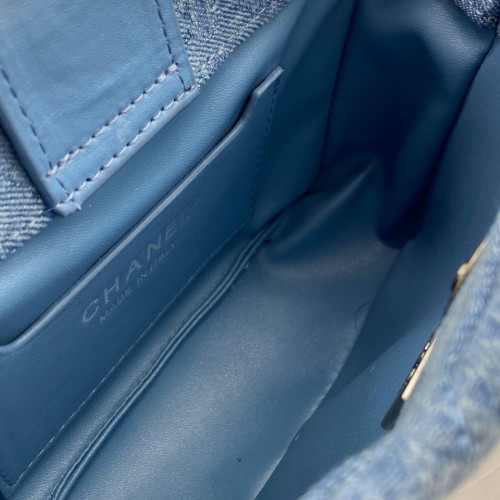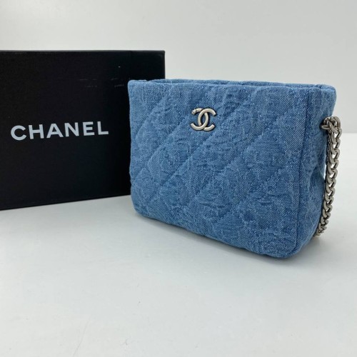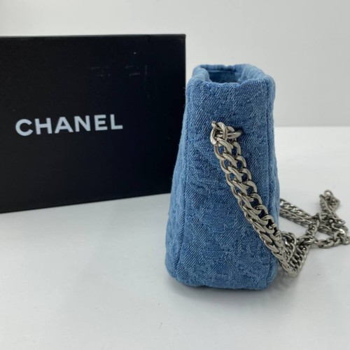 Голубая сумка Chanel из текстиля и натуральной кожи. Компактный аксессуар вместит самые важные для вас вещи. Идеально будет смотреться с повседневным образом. В нашем интернет-магазине вы можете купить копии сумок с доставкой по Москве и по всей России.