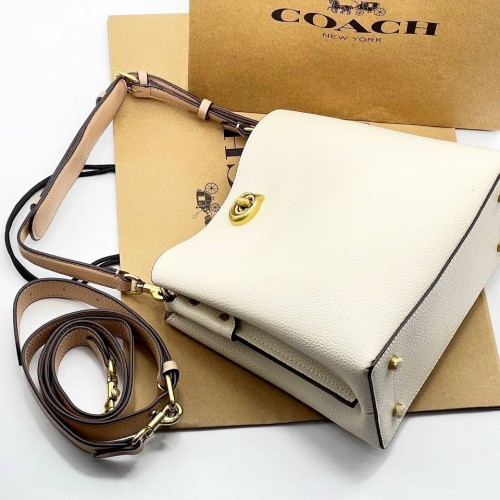 Белая сумка Coach из натуральной кожи. Благодаря универсальному цвету эту модель можно легко комбинировать с различными аксессуарами. Её можно носить как в руке, так и на плече. В нашем интернет-магазине вы можете купить копии сумок с доставкой по Москве и по всей России.