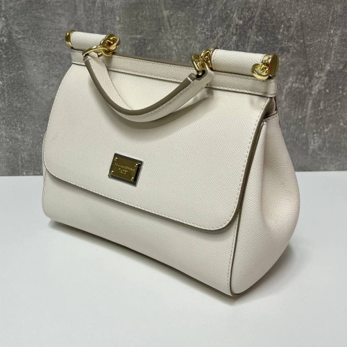 Белая сумка Dolce Gabbana из натуральной кожи. Строгая и лаконичная сумка идеально подойдет под любой образ благодаря универсальному белому цвету. Она гарантированно станет центральной частью вашего стильного лука. В нашем интернет-магазине вы можете купить копии сумок с доставкой по Москве и по всей России.