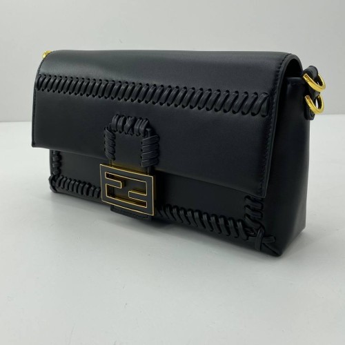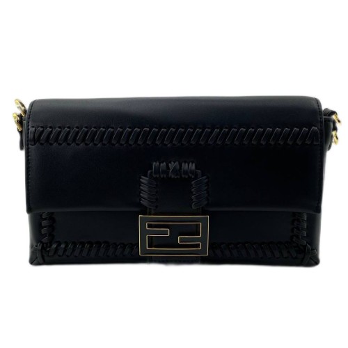 Черная сумка Fendi из натуральной кожи. Стильная сумка удачно акцентирована оригинальной отделкой из тонких кожаных лент. Ее лаконичная прямоугольная форма и строгие пропорции доставят вашему взгляду настоящее наслаждение. В нашем интернет-магазине вы можете купить копии сумок с доставкой по Москве и по всей России.