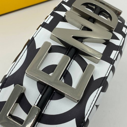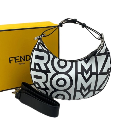 Черно-белая сумка Fendi из натуральной кожи. Эта сумка изготовлена из великолепной по качеству кожи и украшена выпуклой металлической надписью, что несомненно привлечет к вам невероятное количество потрясенных взглядов. Ее броский принт не оставит вас незамеченной. В нашем интернет-магазине вы можете купить копии сумок с доставкой по Москве и по всей России.