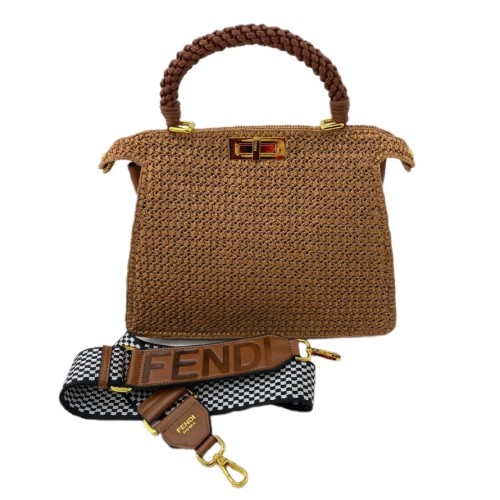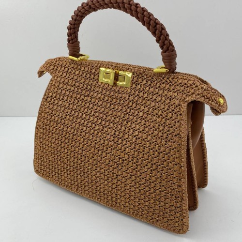Бежевая сумка Fendi из рафии с отделкой из натуральной кожи. Идеальная сумка в которой были сохранены линии и пропорции легендарной модели и добавлен актуальный эко-материал рафия. Очень привлекательный аксессуар, он сможет украсить собой любой летний наряд. В нашем интернет-магазине вы можете купить копии сумок с доставкой по Москве и по всей России.
