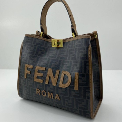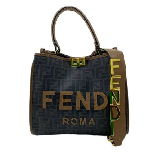 Коричневая сумка Fendi из натуральной кожи. Стильный аксессуар дополнен фурнитурой золотистого цвета, брендовым принтом и надписью Fendi на плечевом ремне. Вместительная модель станет одной из главных деталей вашего образа. В нашем интернет-магазине вы можете купить копии сумок с доставкой по Москве и по всей России.