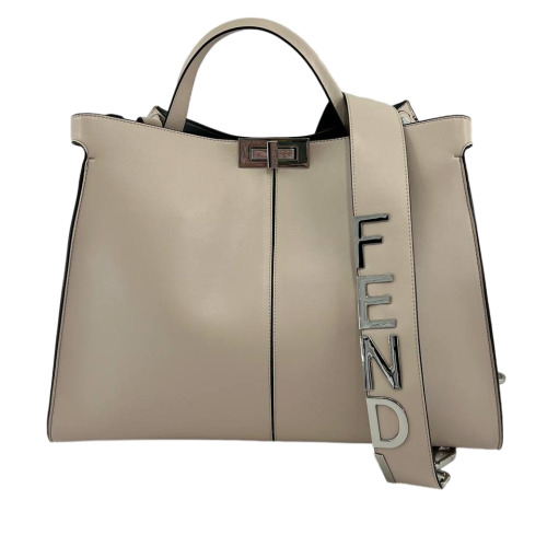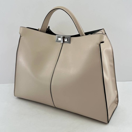 Бежевая сумка Fendi из натуральной кожи. Фурнитура серебристого оттенка выгрышно подчеркивает элегантность модели. Строгие формы и роскошные фирменные детали не оставят равнодушными. В нашем интернет-магазине вы можете купить копии сумок с доставкой по Москве и по всей России.