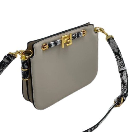 Серая сумка Fendi Touch из натуральной кожи. Сумка из высококачественной кожи серого цвета с удобным двойным отделением-гармошкой и застежкой FF из золотистого металла. Благодаря удобному съемному ремню сумку можно носить как на плече, так и через плечо. В нашем интернет-магазине вы можете купить копии сумок с доставкой по Москве и по всей России.
