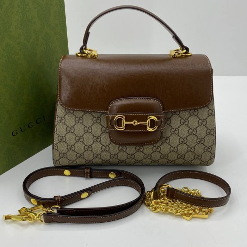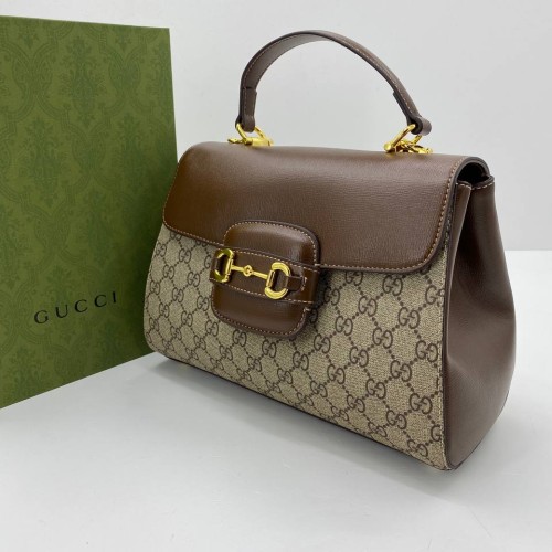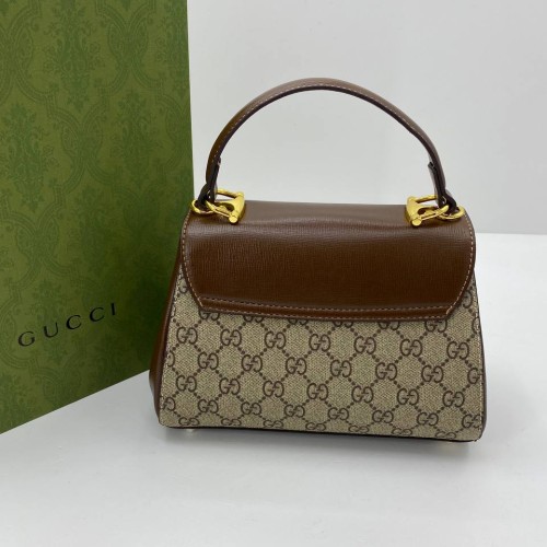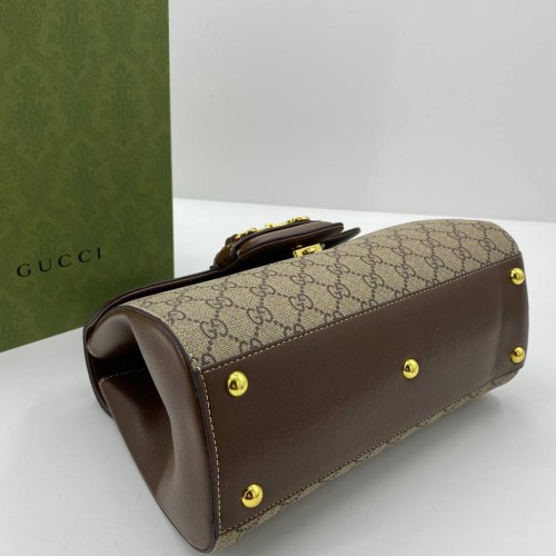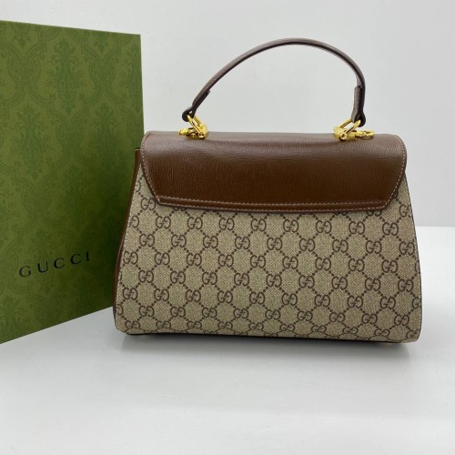 Бежево-коричневая сумка Gucci из канвы и натуральной кожи. Всегда актуальная модель, классического силуэта, изготовлена из брендовой канвы и натуральной кожи, что полностью соответствует духу времени. В этой сумке присутствуют все легендарные и узнаваемые черты, присущие бренду. В нашем интернет-магазине вы можете купить копии сумок с доставкой по Москве и по всей России.