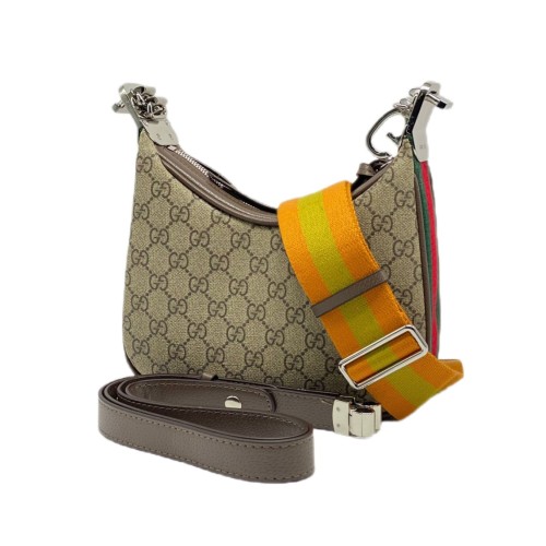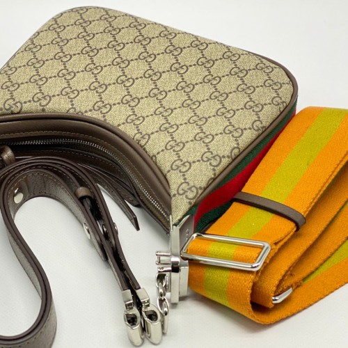 Сумка с закрытием на молнию и дополнительную застежку на крючок. Внутри одно отделение и плоский открытый кармашек. В комплекте: два съемных ремня.