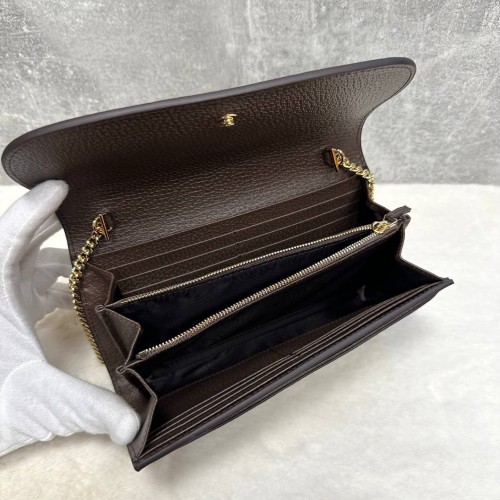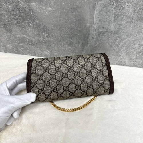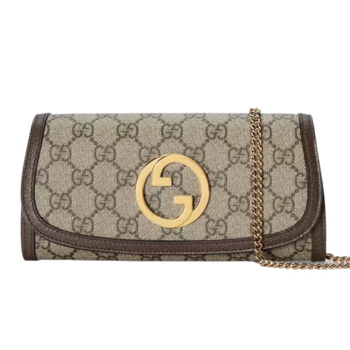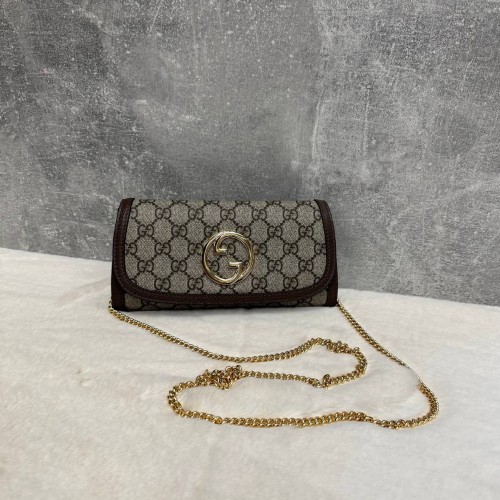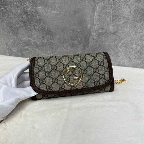 Коричнево-бежевая сумка Gucci Blondie из канвы с отделкой натуральной кожей. Очаровательная модель дополнена тонким ремешком-цепочкой. Фурнитура золотистого цвета украшает дизайн аксессуара. В нашем интернет-магазине вы можете купить копии сумок с доставкой по Москве и по всей России.