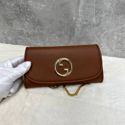 Коричневая сумка Gucci Blondie из натуральной кожи. Лицевую часть модели украшает блестящая деталь в виде круглых переплетенных букв G золотистого цвета. В этот аксессуар вместится всё необходимое и ценное. В нашем интернет-магазине вы можете купить копии сумок с доставкой по Москве и по всей России.