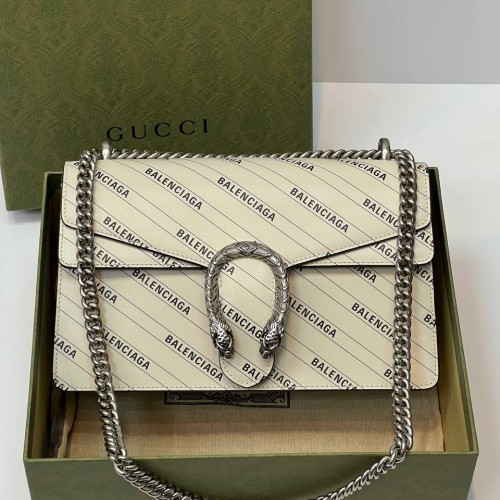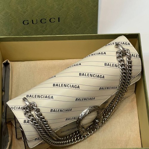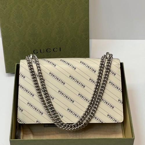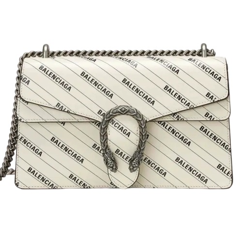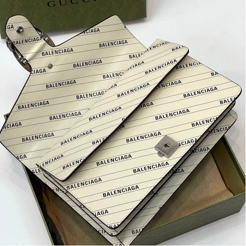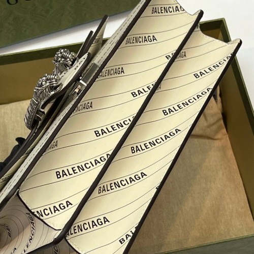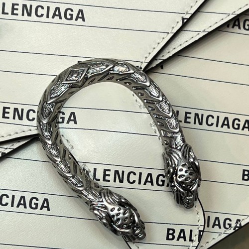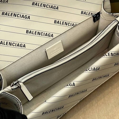 Белая сумка Gucci из натуральной кожи. Стильный и практичный аксессуар для ежедневного использования. Очаровательный модель украшена надписью Balenciaga и культовой пряжкой-змеёй на закрытии. В нашем интернет-магазине вы можете купить копии сумок с доставкой по Москве и по всей России.