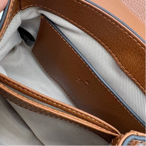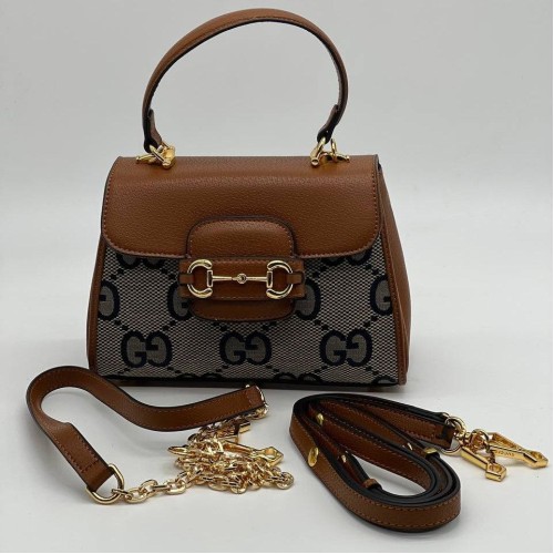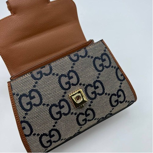 Бежево-коричневая сумка Gucci из текстиля и натуральной кожи. Всегда актуальная модель классического силуэта изготовлена из качественных материалов. В этом аксессуаре присутствуют все легендарные и узнаваемые детали, присущие бренду. В нашем интернет-магазине вы можете купить копии сумок с доставкой по Москве и по всей России.