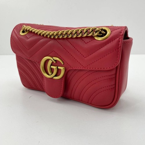 Красная сумка Gucci из натуральной кожи. Невероятно женственная модель добавит новых красок в ваш гардероб. Скользящий ремешок позволяет варьировать и создавать новые роскошные образы. В нашем интернет-магазине вы можете купить копии сумок с доставкой по Москве и по всей России.