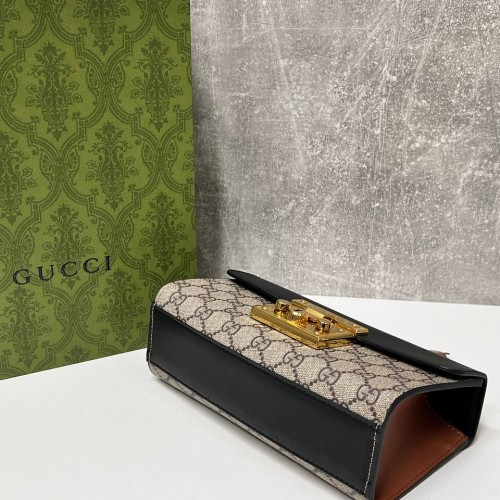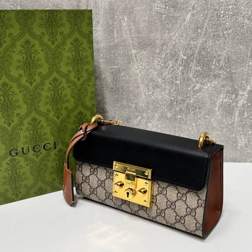 Бежево-черная сумка Gucci из канвы и натуральной кожи. Безупречность линий и функциональность идеально сочетаются в этом аксессуаре. Качественная модель может без труда прослужить вам долгие годы. В нашем интернет-магазине вы можете купить копии сумок с доставкой по Москве и по всей России.