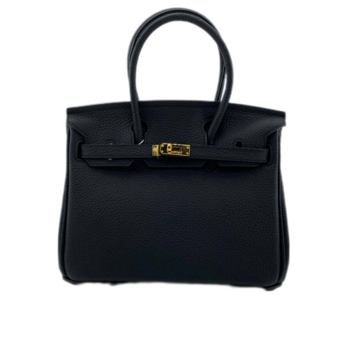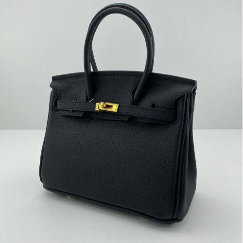 Черная сумка Hermes из натуральной кожи. Роскошная модель дополнена фурнитурой золотистого оттенка. Классический цвет аксессуара подойдет к любому образу и стилю. В нашем интернет-магазине вы можете купить копии сумок с доставкой по Москве и по всей России.