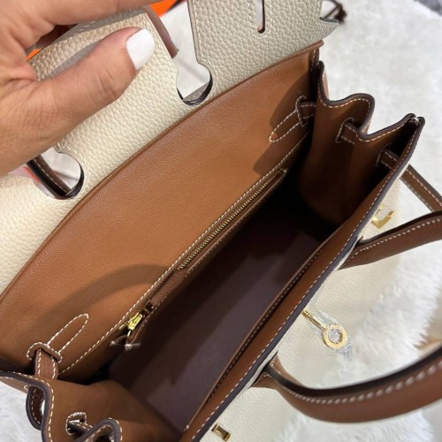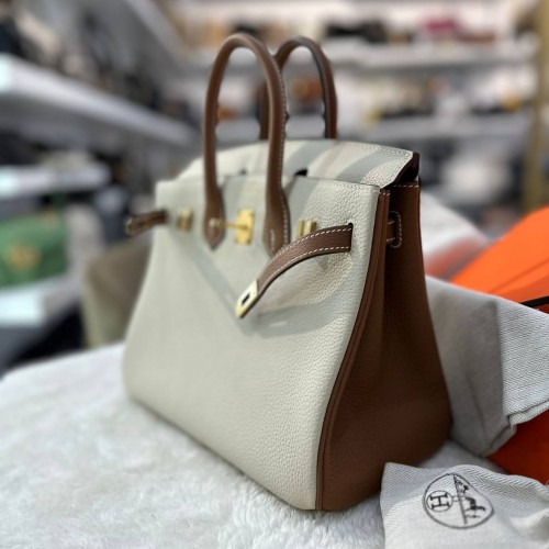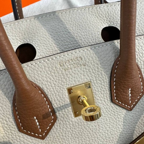 Бело-коричневая сумка Hermes из натуральной кожи. Удобные ручки контрастного цвета делают ношение модели максимально комфортным. С таким стильным аксессуаром вы точно не останетесь без внимания. В нашем интернет-магазине вы можете купить копии сумок с доставкой по Москве и по всей России.