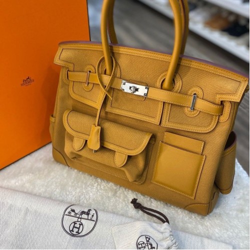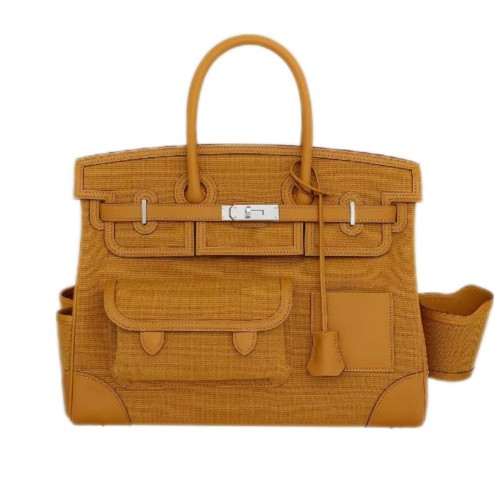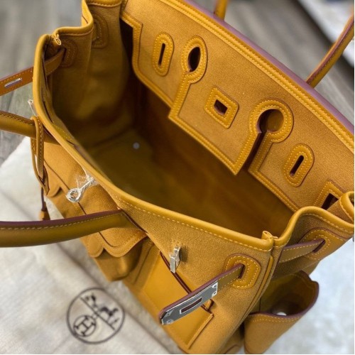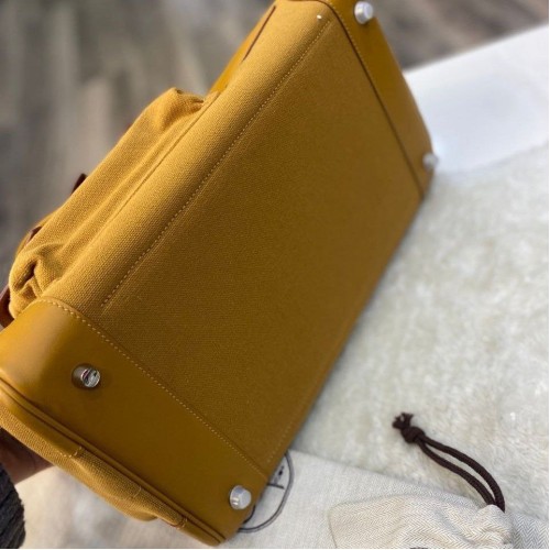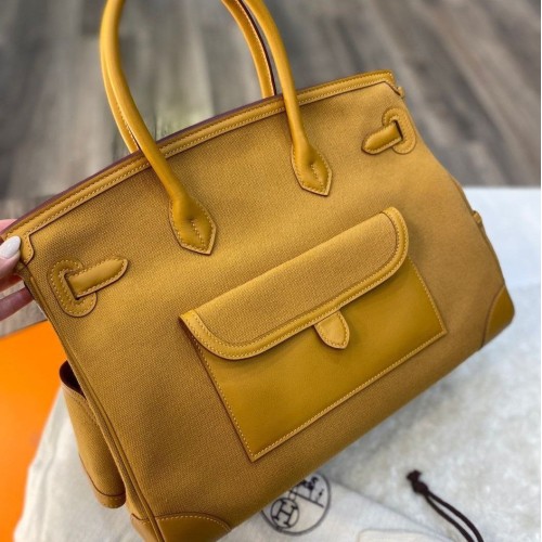 Желтая сумка Hermes из текстиля и натуральной кожи. Оригинальный аксессуар станет идеальным, завершающим штрихом любого модного образа. Внешние карманы делают модель функциональной. В нашем интернет-магазине вы можете купить копии сумок с доставкой по Москве и по всей России.