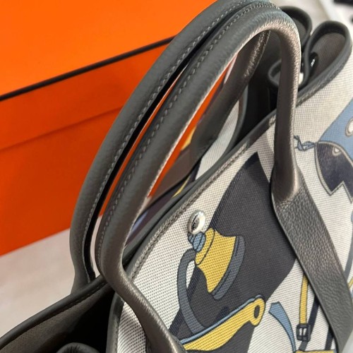 Серая сумка Hermes из текстиля и натуральной кожи. Универсальная модель гармонично будет смотреться как с повседневным, так и с офисным стилем. Вместит всё необходимое и порадует вас своей практичностью. В нашем интернет-магазине вы можете купить копии сумок с доставкой по Москве и по всей России.