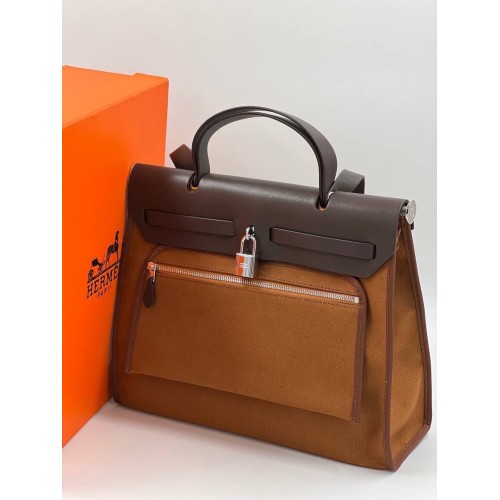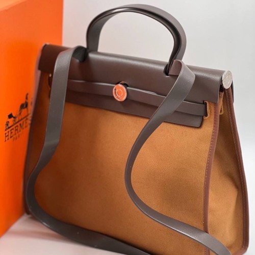 Коричневая сумка Hermes из текстиля с отделкой натуральной кожей. Вместительная модель с узнаваемым дизайном подходит как для повседневного использования, так и для деловой втречи. Для тех кто любит носить аксессуар на плече, в комплекте идет длинный ремень. В нашем интернет-магазине вы можете купить копии сумок с доставкой по Москве и по всей России.