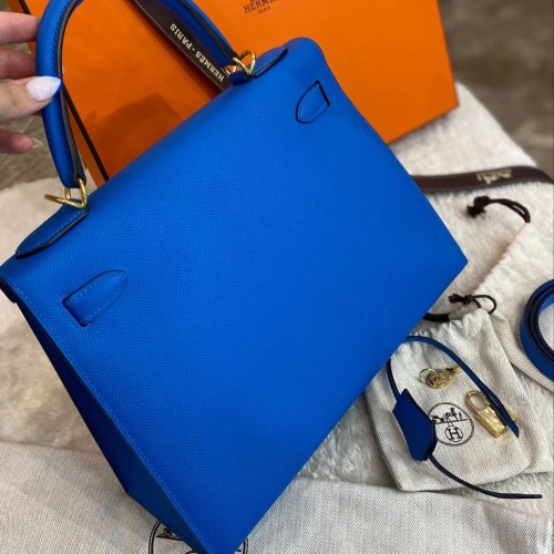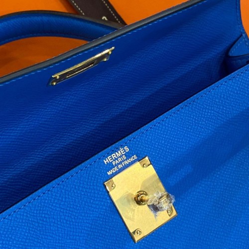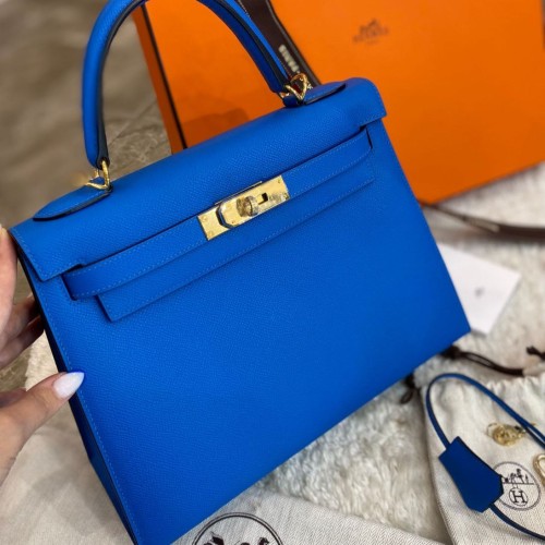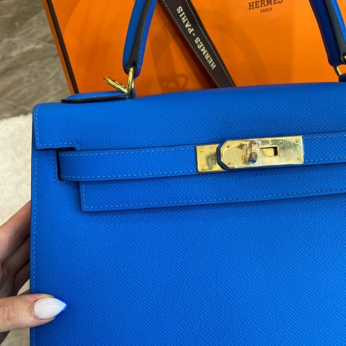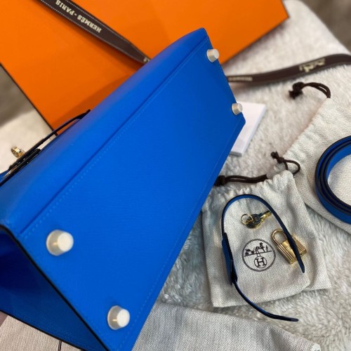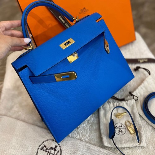 Синяя сумка Hermes из натуральной кожи. Классическая модель в форме трапеции подойдет как для делового образа, так и для ежедневного ношения. Яркий цвет аксессуара привлечет внимание и добавит акцент к вашему образу. В нашем интернет-магазине вы можете купить копии сумок с доставкой по Москве и по всей России.
