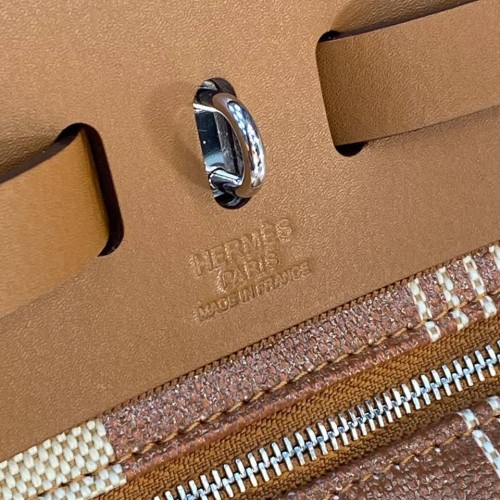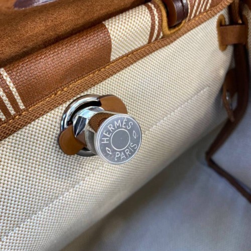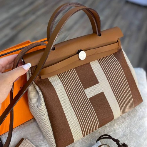 Коричнево-бежевая сумка Hermes из текстиля и натуральной кожи. В стильной модели прекрасно сочетаются материалы различной фактуры. Вместительный и функциональный аксессуар добавит в ваш образ особое очарование. В нашем интернет-магазине вы можете купить копии сумок с доставкой по Москве и по всей России.