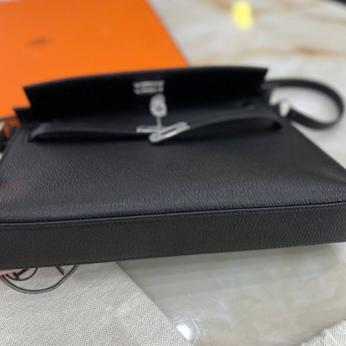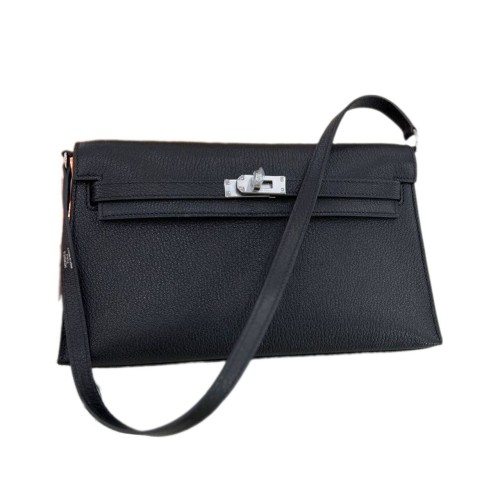 Черная сумка Hermes из натуральной кожи. Стильный аксессуар, который украсит любой ваш образ. Дизайн модели завершает серебристая фурнитура и съемный плечевой ремень. В нашем интернет-магазине вы можете купить копии сумок с доставкой по Москве и по всей России.