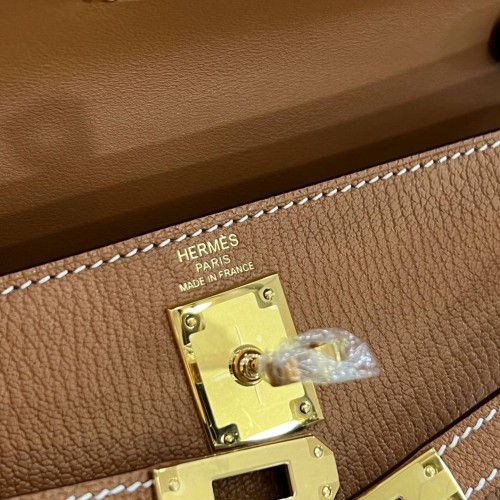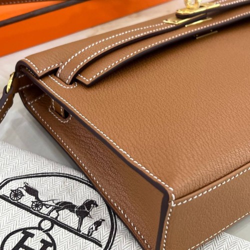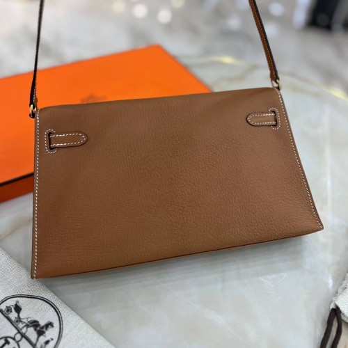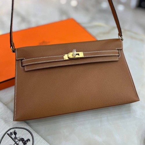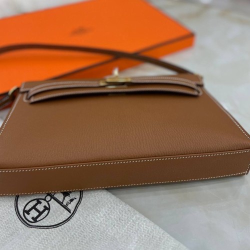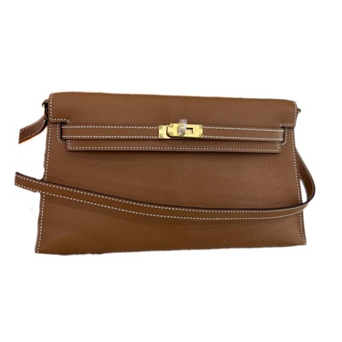 Коричневая сумка Hermes из натуральной кожи. Роскошный аксессуар идеально завершит любой ваш образ. Съемный ремень и фурнитура золотистого оттенка украшают дизайн модели. В нашем интернет-магазине вы можете купить копии сумок с доставкой по Москве и по всей России.