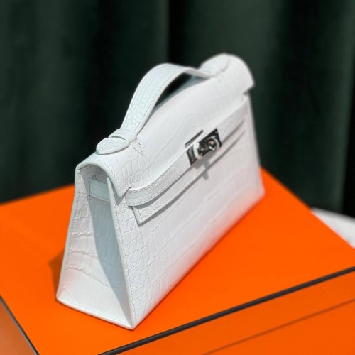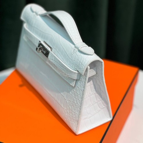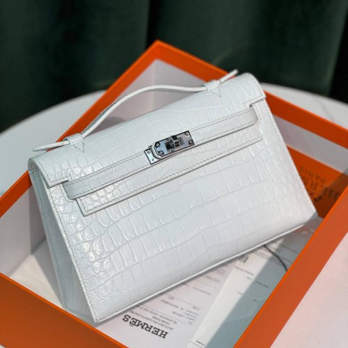Белая сумка Hermes из натуральной кожи. Фурнитура серебристого оттенка удачно дополняет дизайн модели. Стильный и модный аксессуар покорит вас с первого взгляда. В нашем интернет-магазине вы можете купить копии сумок с доставкой по Москве и по всей России.
