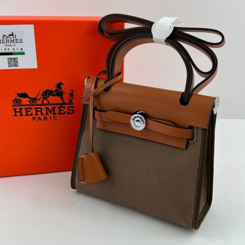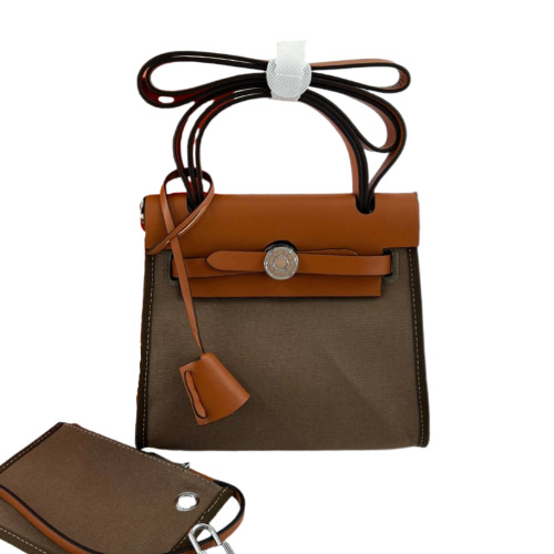 Коричневая сумка Hermes из текстиля и натуральной кожи. Два оттенка материала сумки отлично сочетаются в этом изделии. Прекрасно подойдет для всего необходимого на каждый день. В нашем интернет-магазине вы можете купить копии сумок с доставкой по Москве и по всей России.