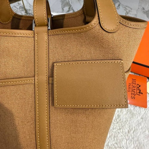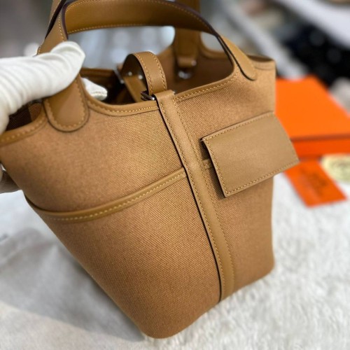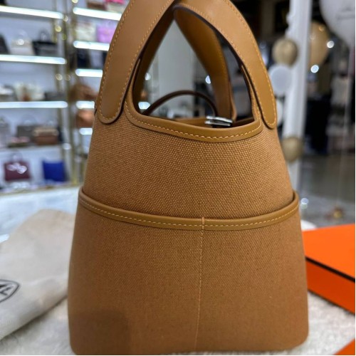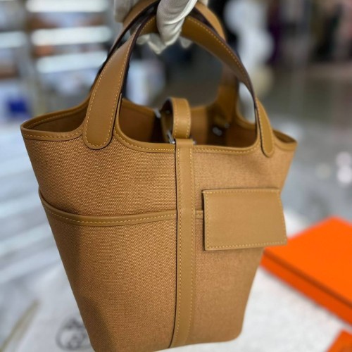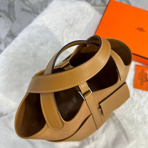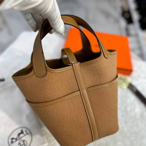 Коричневая сумка Hermes из текстиля и натуральной кожи. Аксессуар прекрасно сочетает в себе компактность и вместительность. Прекрасно подойдет под любой ваш образ и выгодно подчеркнет его. В нашем интернет-магазине вы можете купить копии сумок с доставкой по Москве и по всей России.