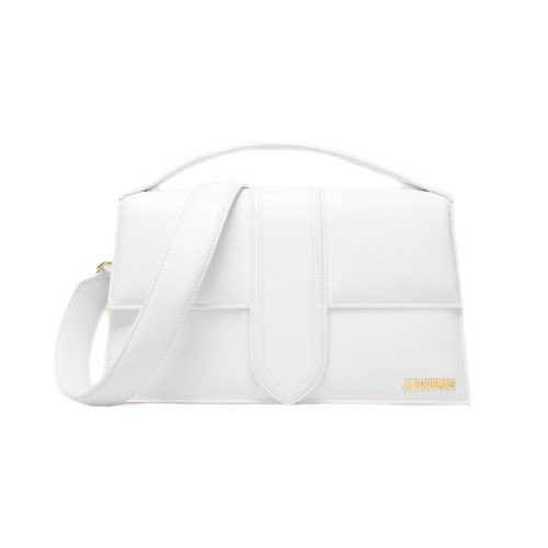 Белая сумка Jacquemus из натуральной кожи. Практичная и стильная модель отличается роскошным качеством исполнения. Аксессуар дополнен ручкой сверху и съемным плечевым ремнем. В нашем интернет-магазине вы можете купить копии сумок с доставкой по Москве и по всей России.