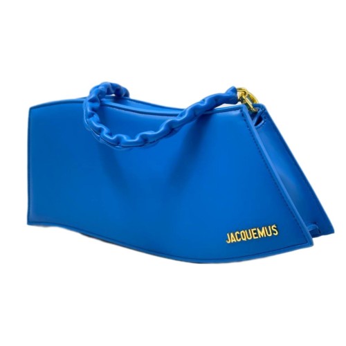 Синяя сумка Jacquemus из натуральной кожи. Притягивающий внимание яркий цвет поможет вам выделиться. Стильный аксессуар дополнен фурнитурой золотистого цвета и оригинальной ручкой. В нашем интернет-магазине вы можете купить копии сумок с доставкой по Москве и по всей России.
