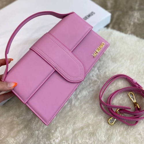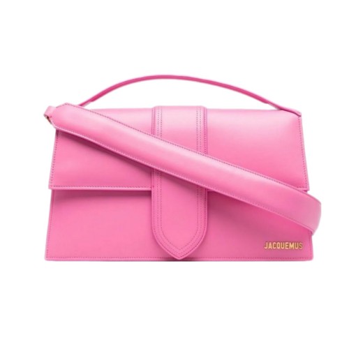 Розовая сумка Jacquemus из натуральной кожи. Модель можно носить как за ручку, так и с плечевым ремнем. Минималистичный дизайн дополнен золотистым логотипом бренда. В нашем интернет-магазине вы можете купить копии сумок с доставкой по Москве и по всей России.