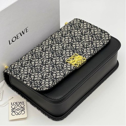 Черная сумка Loewe Goya из текстиля и натуральной кожи. Аксессуар идеально впишется в ваш гардероб и дополнит образ новыми красками. Строгие формы и роскошные фирменные детали не оставят равнодушными. В нашем интернет-магазине вы можете купить копии сумок с доставкой по Москве и по всей России.