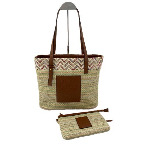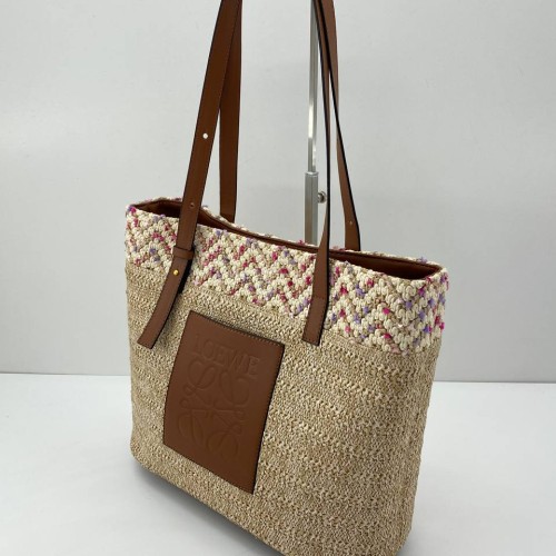 Бежевая сумка Loewe из рафии и натуральной кожи. Удобная и потрясающе вместительная сумка пригодится вам не один раз, как на шоппинге, так и на пляже. Она выполнена из экологически чистого материала-рафии в спокойных, но приятных цветах и точно сможет занять достойное место в вашем гардеробе. В нашем интернет-магазине вы можете купить копии сумок с доставкой по Москве и по всей России.