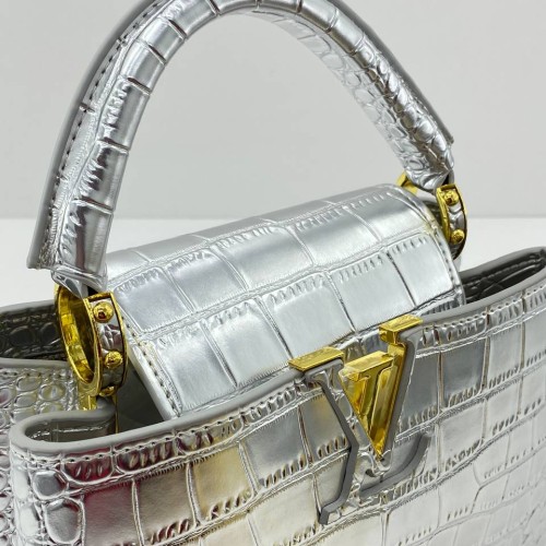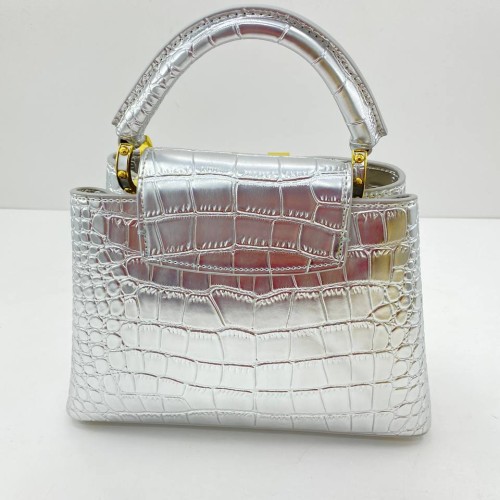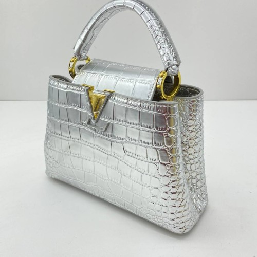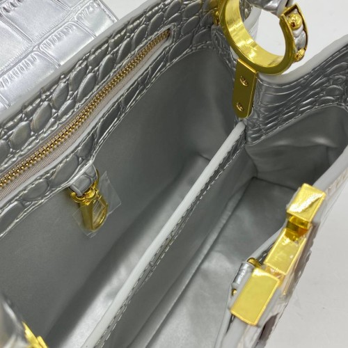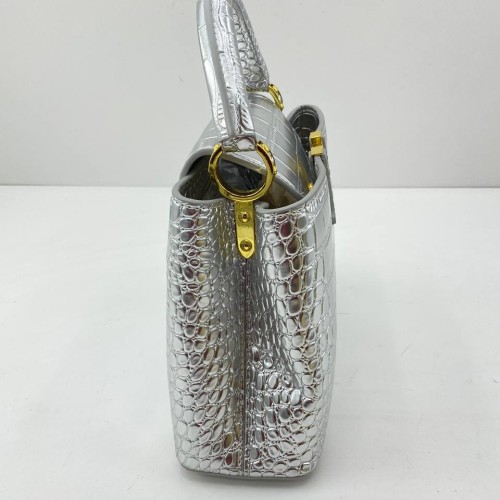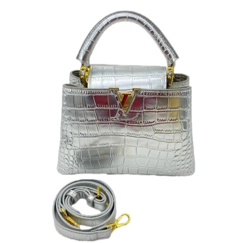 Серебряная сумка Louis Vuitton из натуральной кожи. Невероятная, космическая сумка, она сияет подобно яркой звезде. С ней вы почувствуете себя настоящей королевской особой. В нашем интернет-магазине вы можете купить копии сумок с доставкой по Москве и по всей России.