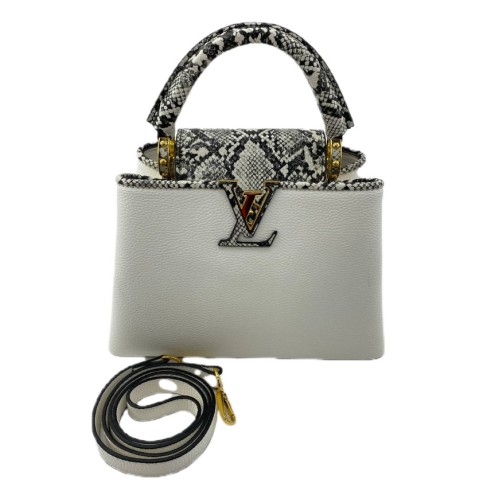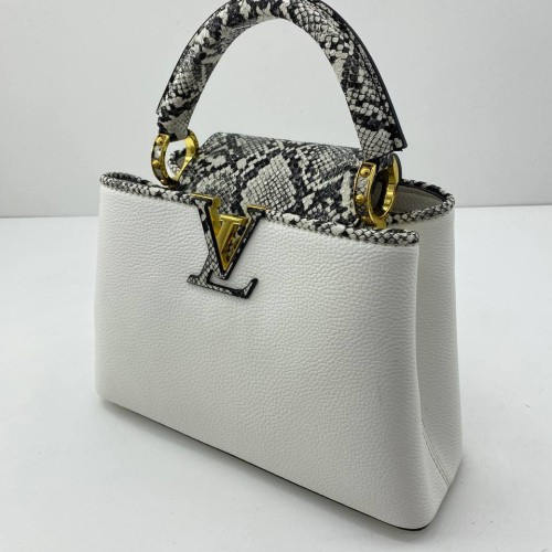 Белая сумка Louis Vuitton из натуральной кожи. Роскошная сумка прекрасно подойдет под любой образ. Клапан с рисунком под рептилию придает ей изысканности и актуальности. В нашем интернет-магазине вы можете купить копии сумок с доставкой по Москве и по всей России.