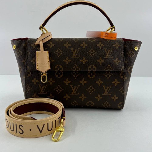 Коричневая сумка Louis Vuitton из канвы с отделкой бежевой натуральной кожей. Роскошная модель подойдет как для повседневного, так и для офисного стиля. Модный дизайн дополнен плечевым ремнем и фурнитурой золотистого цвета. В нашем интернет-магазине вы можете купить копии сумок с доставкой по Москве и по всей России.