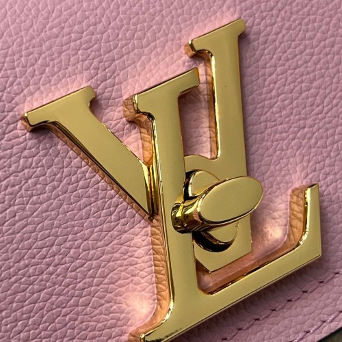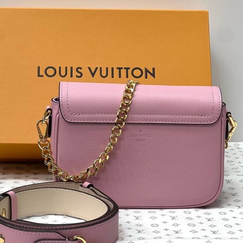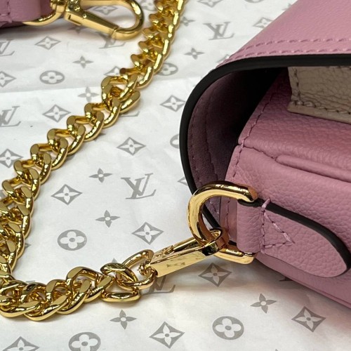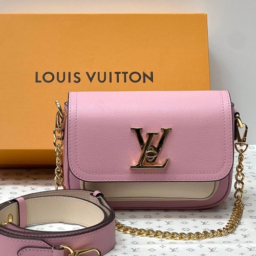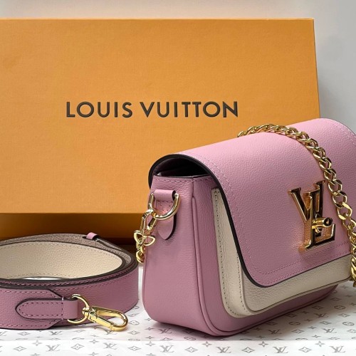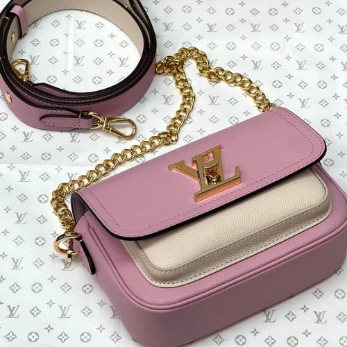 Розовая сумка Louis Vuitton Lockme Tender из натуральной кожи. Эта невероятно милая и женственная сумка изготовленная из мягкой рельефной кожи станет вашим любимым аксессуаром и займет место номер один в гардеробе-лучший выбор для создания женственного и выразительного образа. Удобный ремень через плечо и цепочка из металла золотистого цвета подчеркнет модный дизайн аксессуара. В нашем интернет-магазине вы можете купить копии сумок с доставкой по Москве и по всей России.