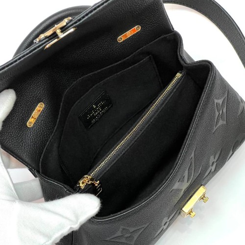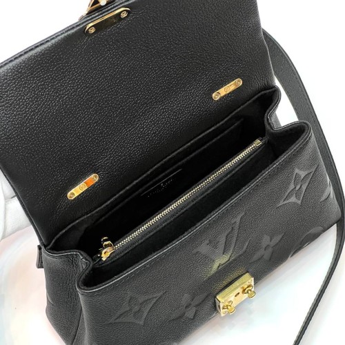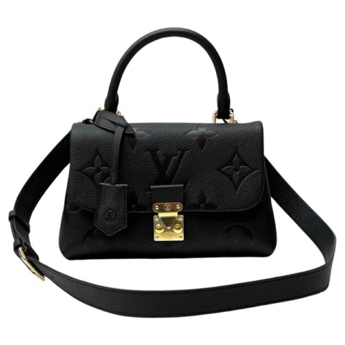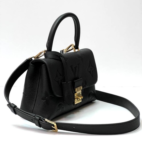 Черная сумка Louis Vuitton Madeleine BB из натуральной кожи. Стильная модель, изготовленная из натуральной кожи черного цвета, украшена тиснением с логотипом марки. Благодаря подчеркнуто элегантным ручкам и регулируемому плечевому ремню эта сумка станет вашим идеальным спутником на каждый день. В нашем интернет-магазине брендовых женских реплик вы можете купить копии сумок с примеркой по всей России.
