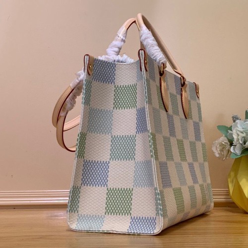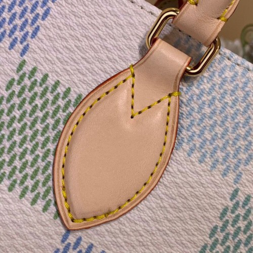 Бежево-зеленая сумка Louis Vuitton из канвы с отделкой натуральной кожей. Оригинальная модель представлена в пастельной цветовой гамме. Удобные ручки позволят носить аксессуар различными вариациями. В нашем интернет-магазине вы можете купить копии сумок с доставкой по Москве и по всей России.