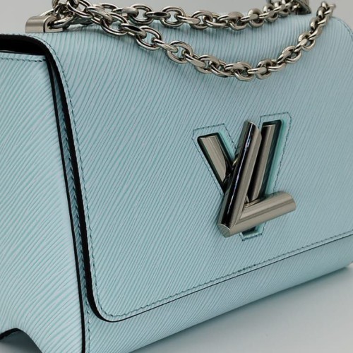 Голубая сумка Louis Vuitton Twist MM из натуральной кожи. Сумка из рельефной высококачественной кожи, нежного голубого цвета, украшена стильной блестящей застежкой с монограммой бренда. Модель, которая великолепно сочетает в себе утонченность и актуальный стиль. В нашем интернет-магазине вы можете купить копии сумок с доставкой по Москве и по всей России.