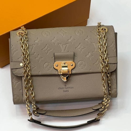 Бежевая сумка Louis Vuitton Vavin PM из натуральной кожи. Эта классическая и стильная сумка отличается броским сочетанием гладкой и тисненой кожи. Легкая, компактная модель, дополнена фирменным блестящим замком. В нашем интернет-магазине вы можете купить копии сумок с доставкой по Москве и по всей России.