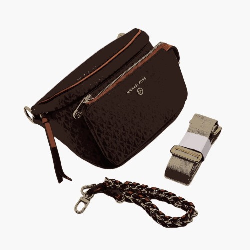 Коричневая сумка Michael Kors из натуральной кожи и канвы. Уникальная модель, которую можно носить несколькими способами-как на плече, так и на поясе. Это отличный, очень практичный и удобный аксессуар. В нашем интернет-магазине вы можете купить копии сумок с доставкой по Москве и по всей России.
